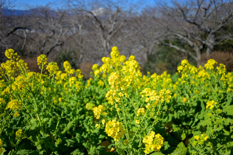 吾妻山公園は寒い冬に、早咲きの菜の花と富士山が見える魅力満載のスポットです。